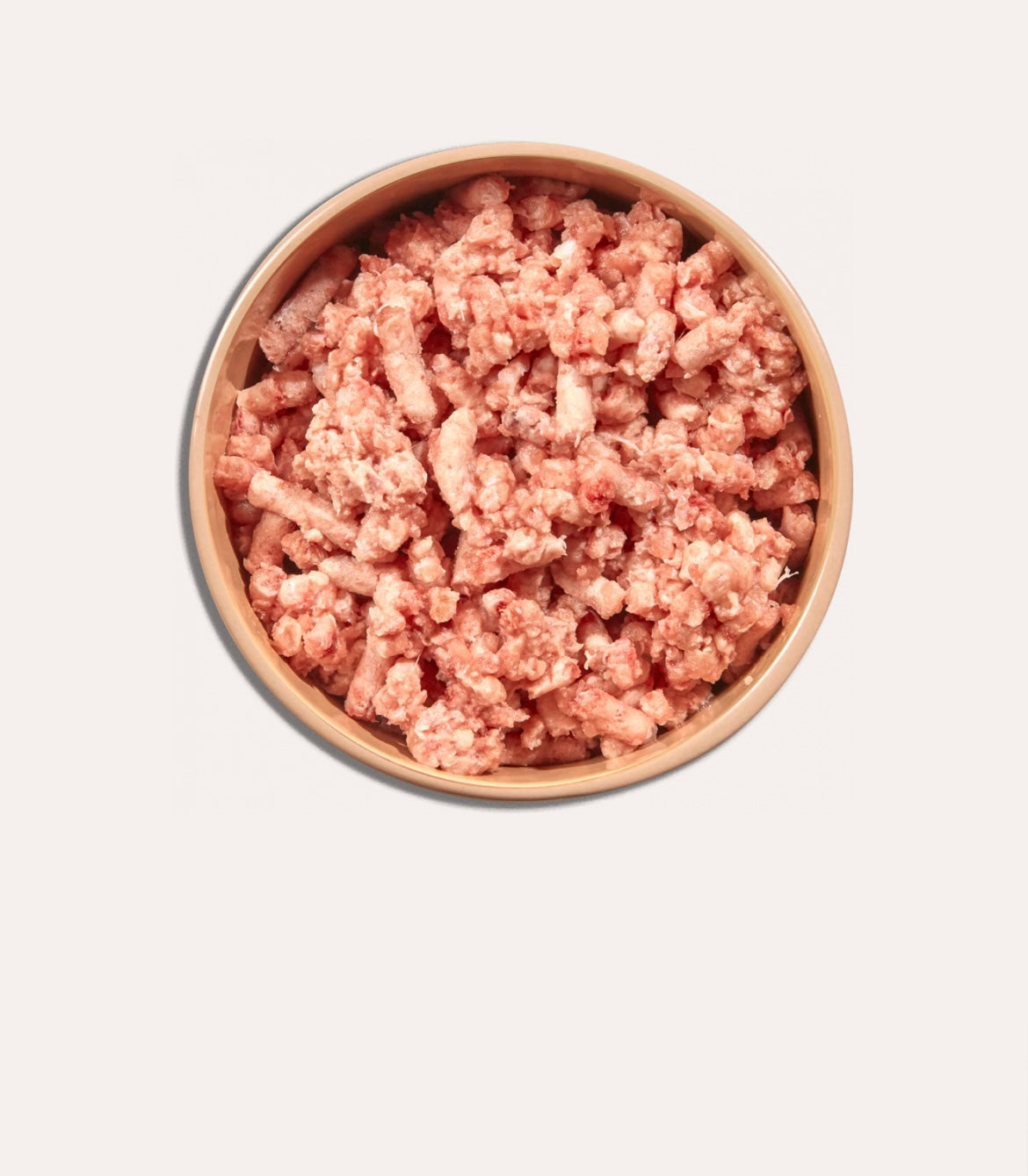 Our Raw Turkey Freeflow Mince is an ingredient, not a complete meal. Add it to other ingredients to make balanced and nutritious raw meals at home.